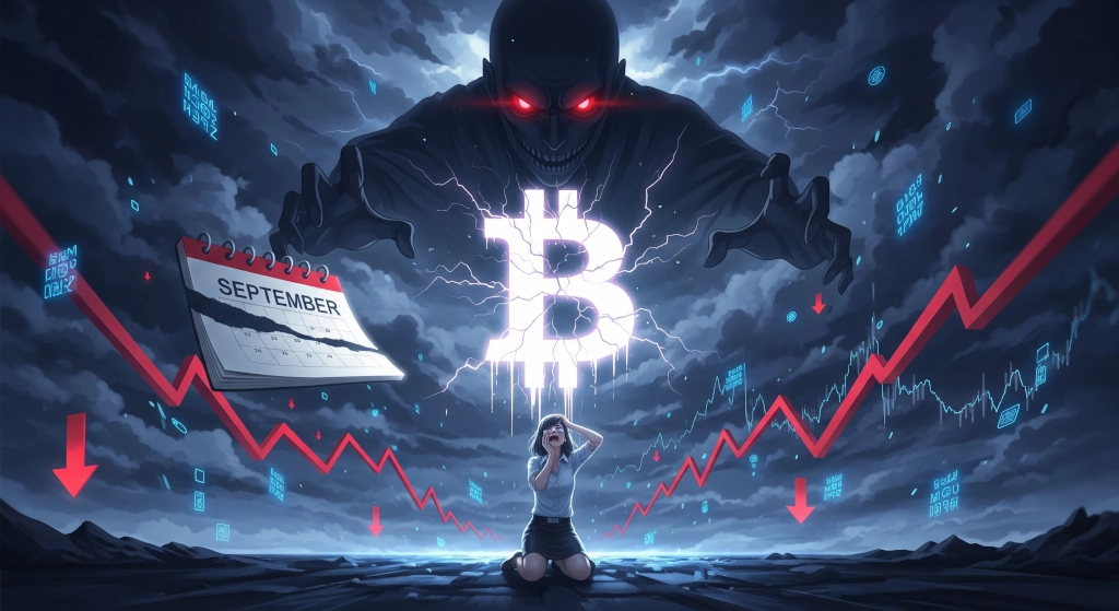 Generated by Google imagen 4 ビットコインの価格は、9月に下がりやすい傾向があります。これは「アノマリー」と呼ばれますが、はっきりとした理由はありません。多くの人が「9月は下がりやすい」と思って売り始めることで、本当に価格が下がること... 仮想通貨