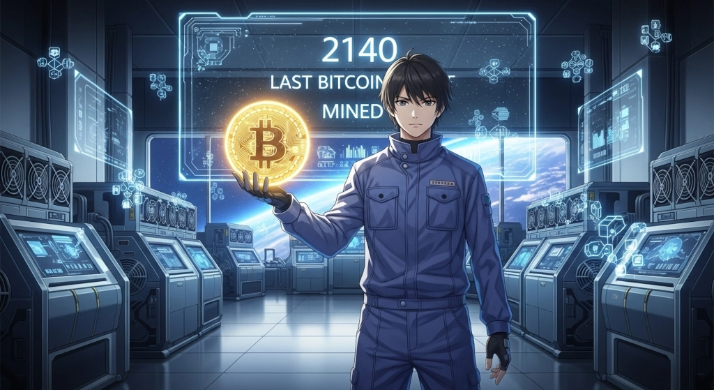 Generated by Google imagen 4 2140年、最後の1枚のビットコインが採掘される年です。新たなコインが二度と生まれることはなく、供給は完全に停止します。なぜビットコインには、「終わり」があらかじめプログラムされているのでしょうか?なぜいま、... 仮想通貨