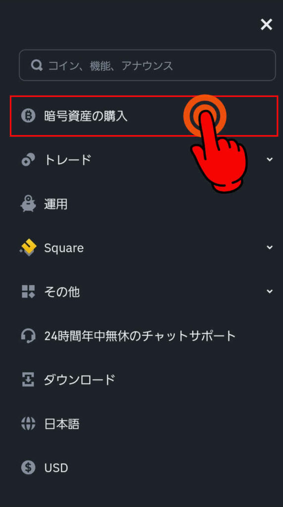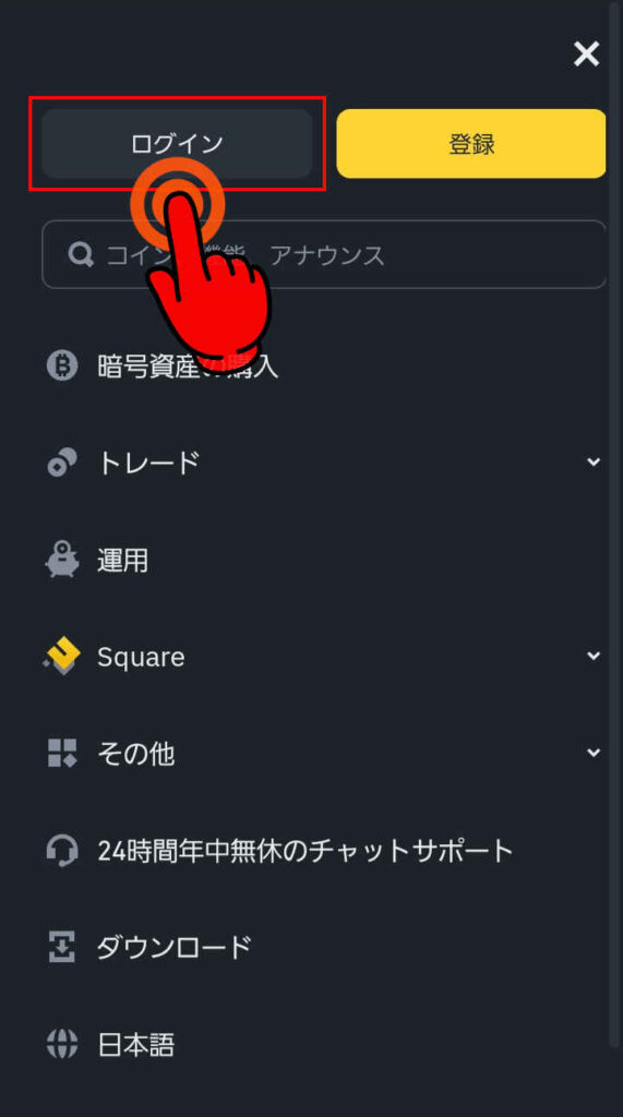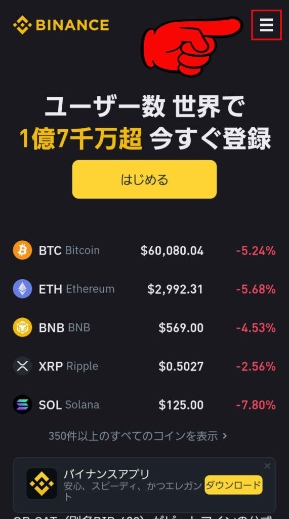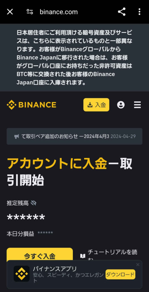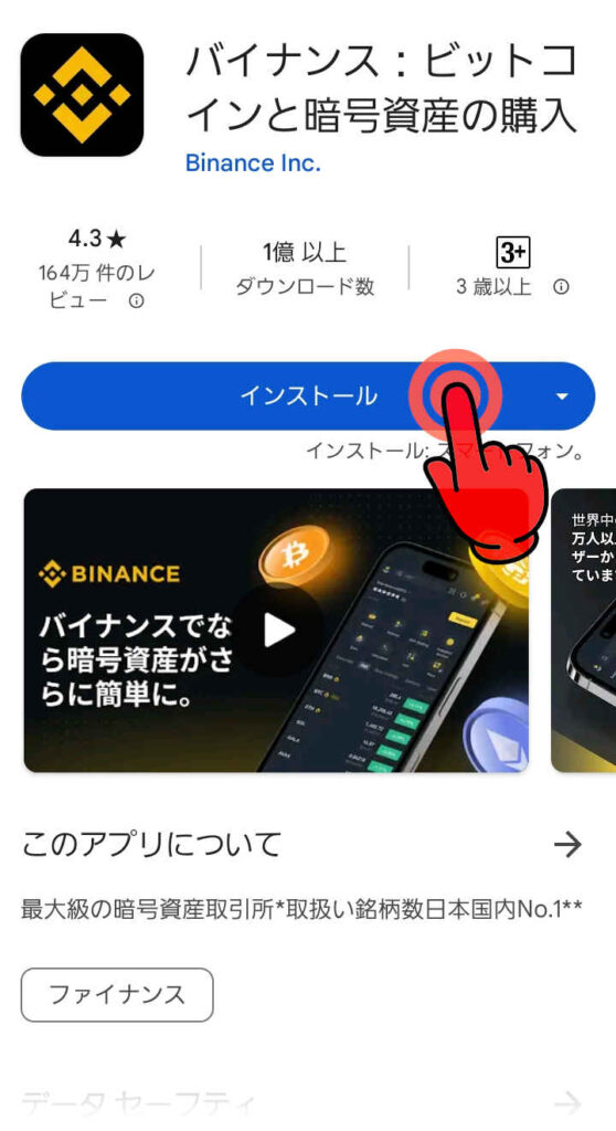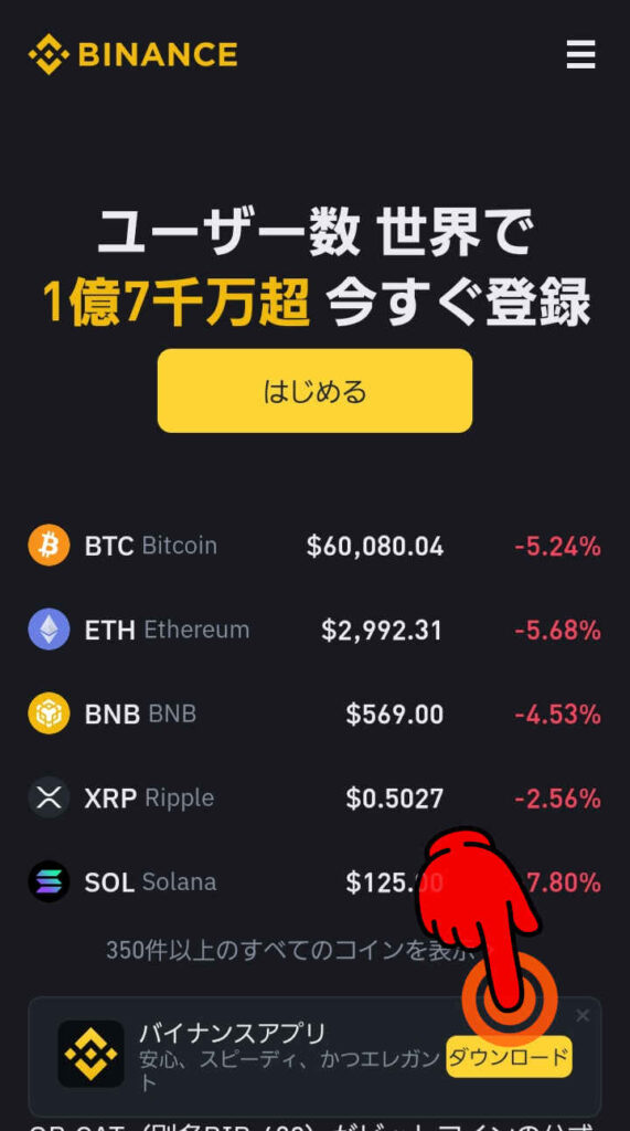 バイナンスアプリの ダウンロード ボタンをタップします。