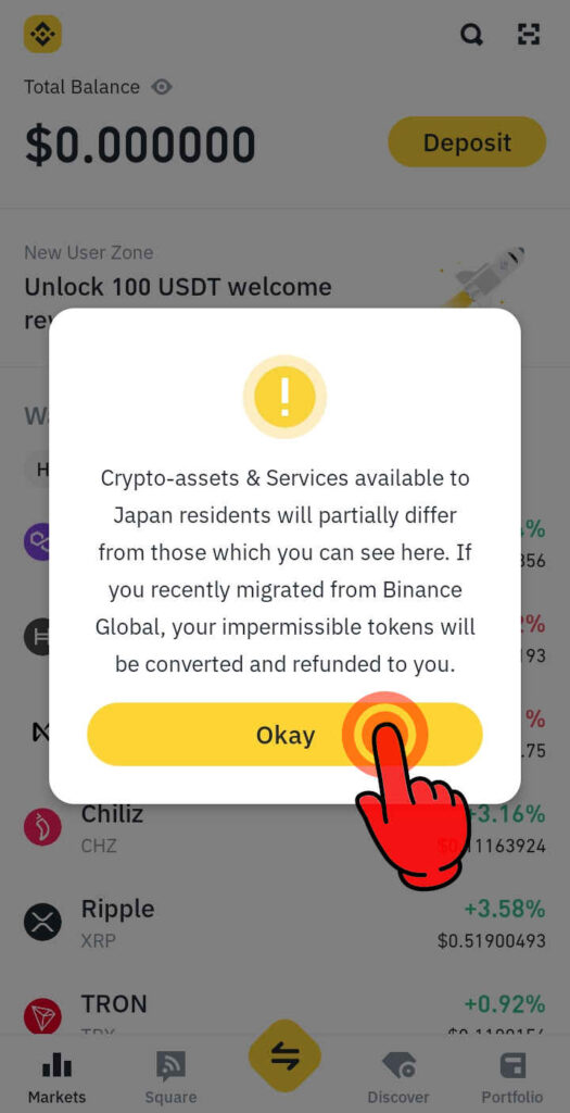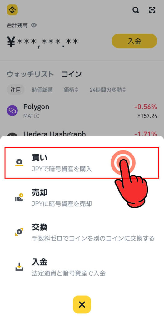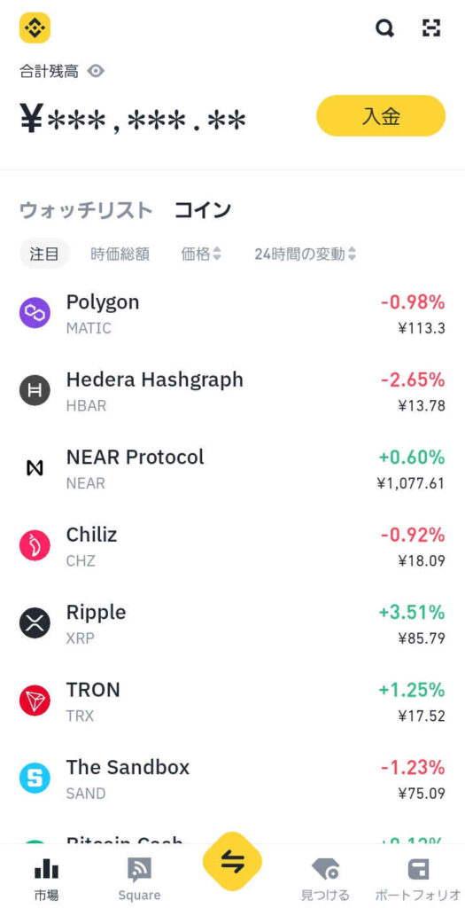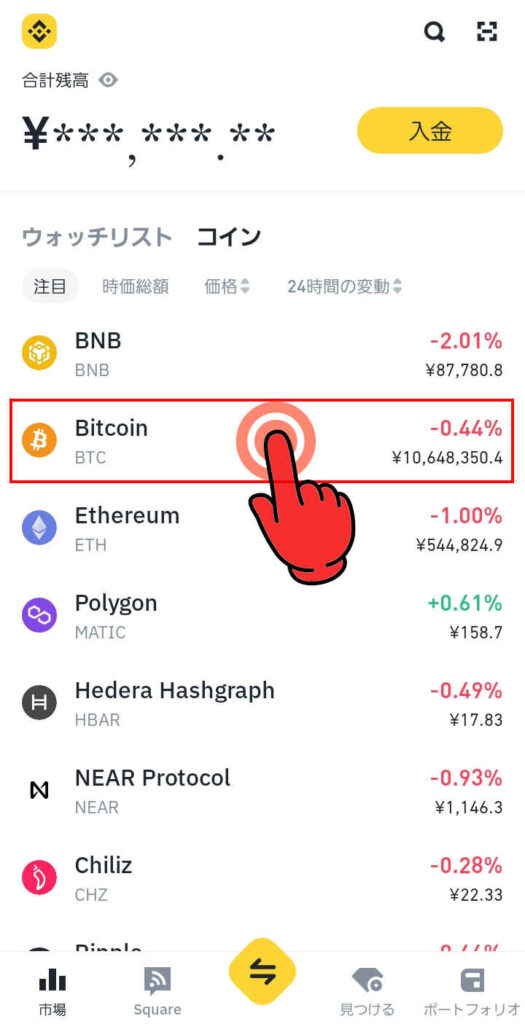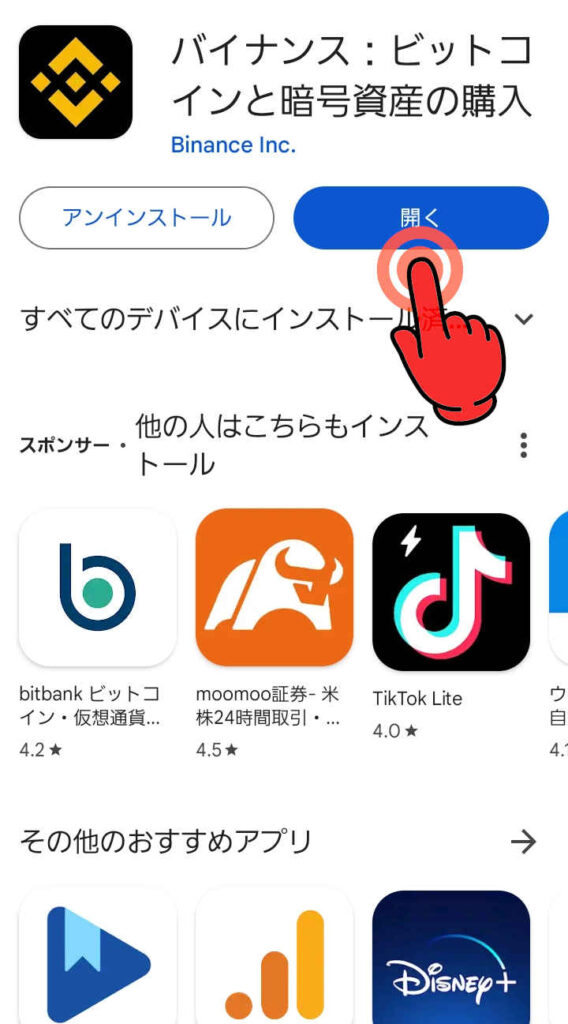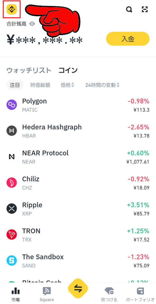 バイナンスアプリの ダウンロード ボタンをタップします。