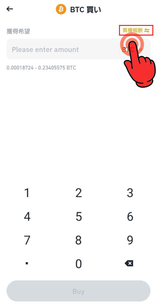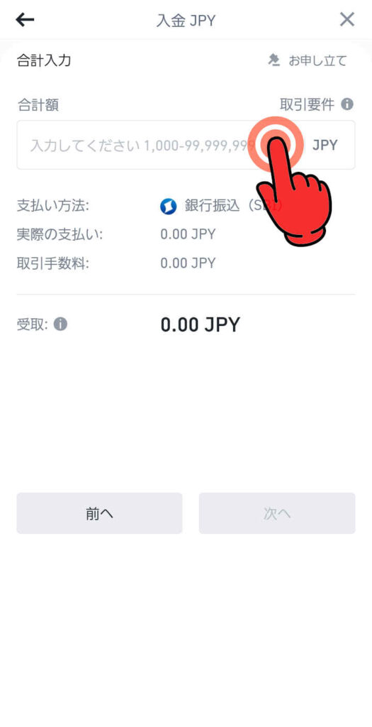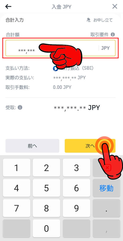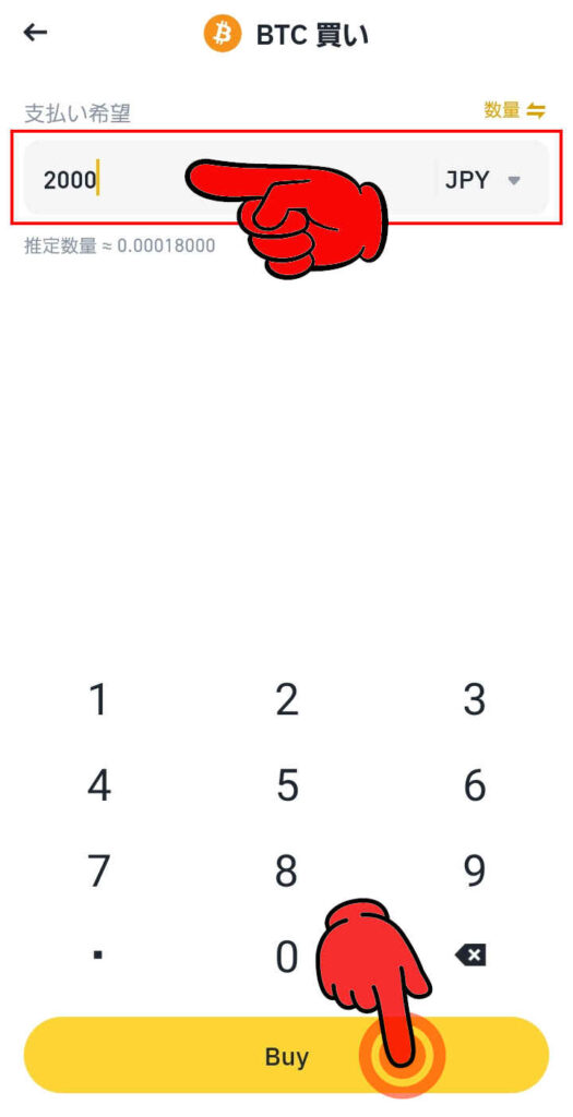 画面下段のテンキーを使って、日本円の購入予定金額を入力します。