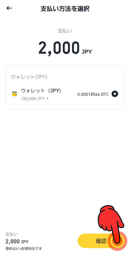 BTC 買い 支払い希望 数量 ⇋ の画面に替わります。