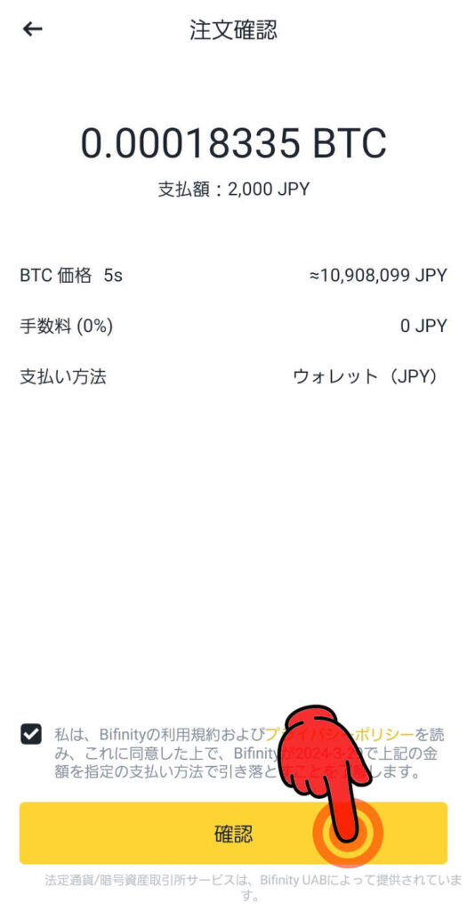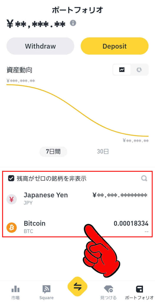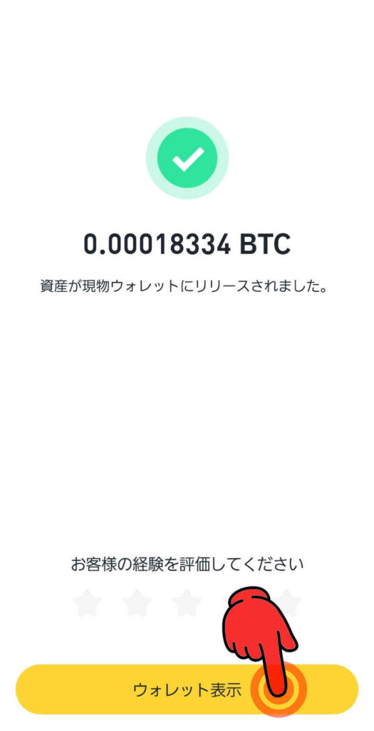 画面下段、BTC 購入後の保有資産の数量を確認します。
