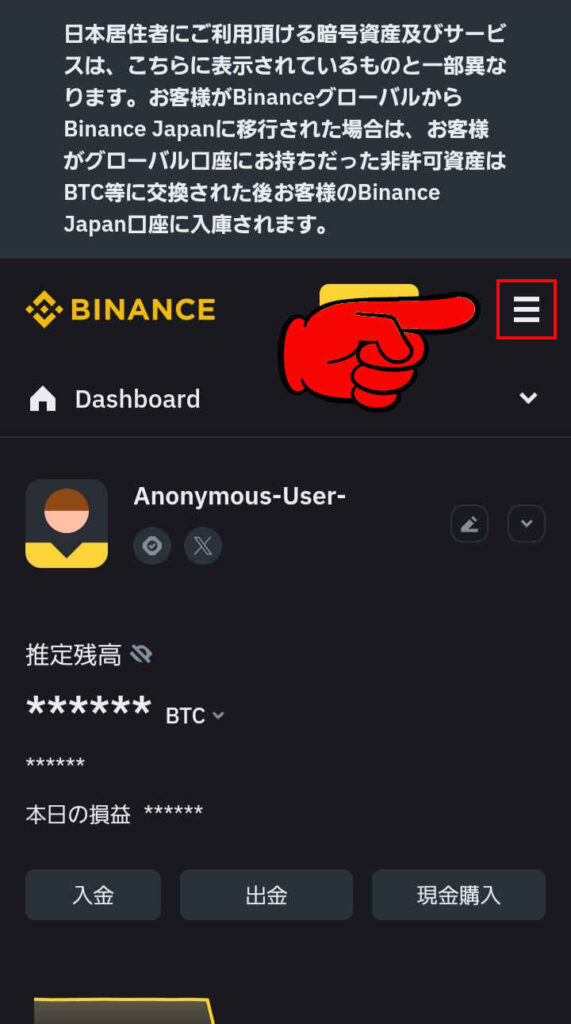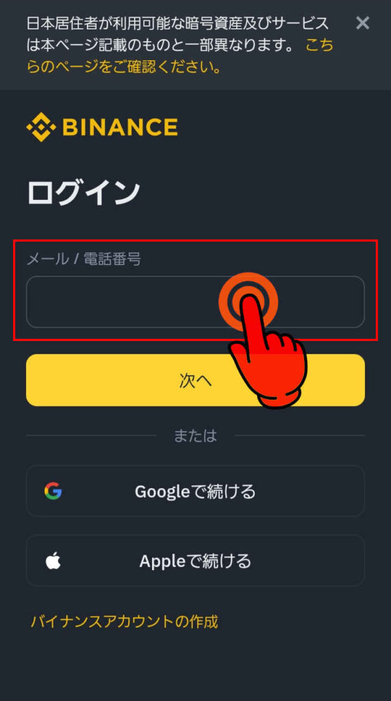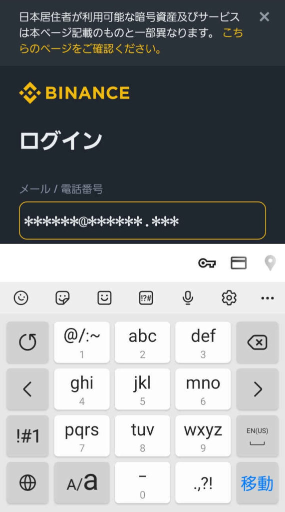 スマホを使って、BINANCE JAPAN の公式サイト にアクセスします。