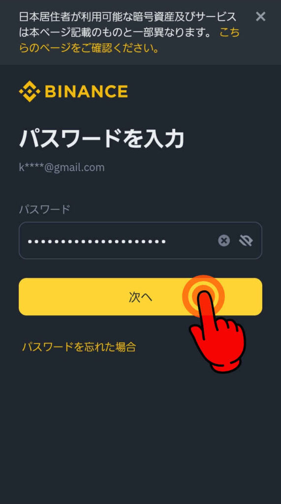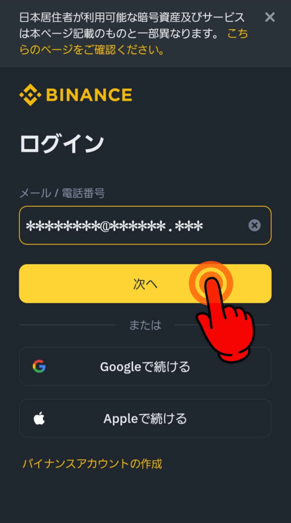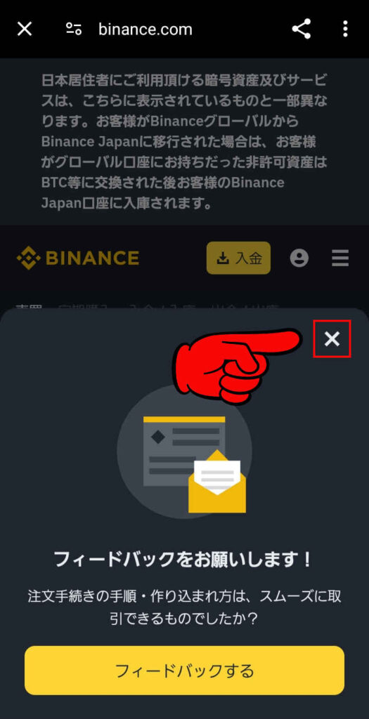 BINANCE JAPAN のウェブサイトへアクセスします。