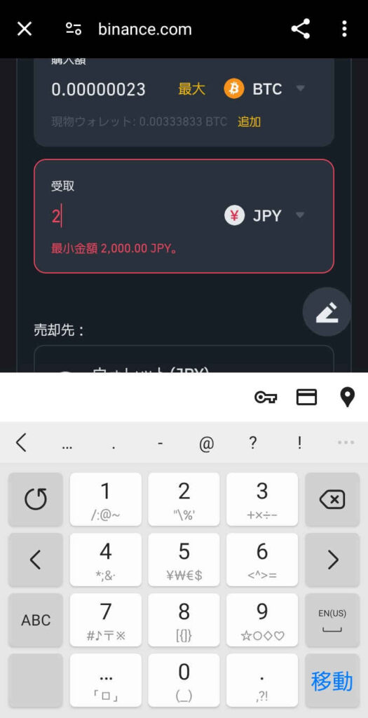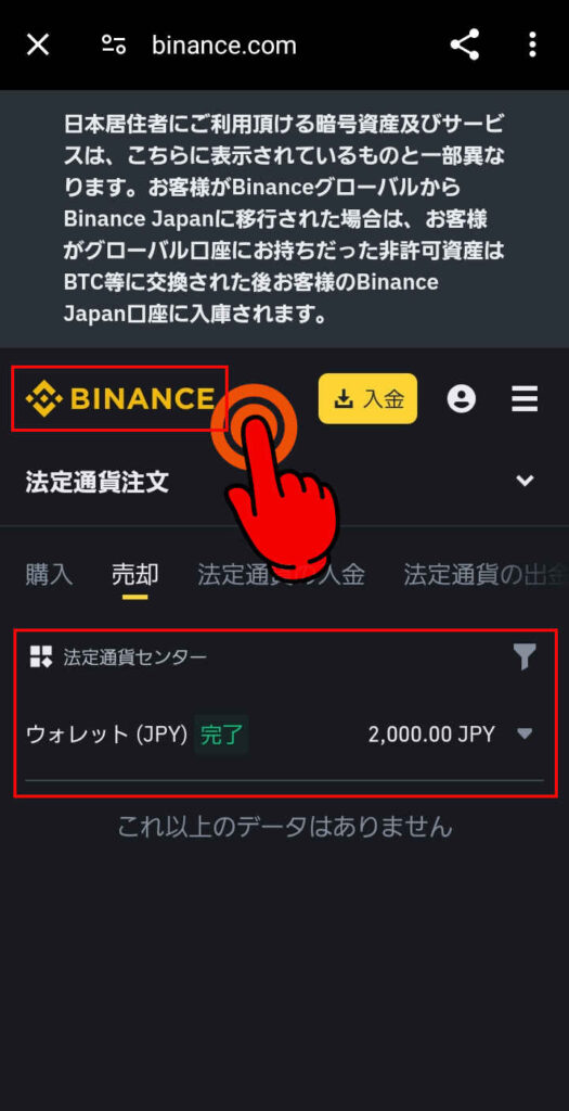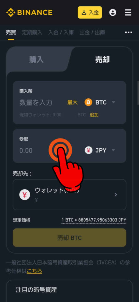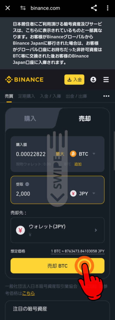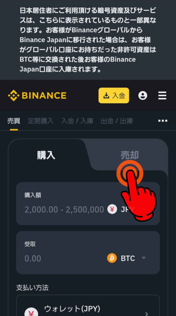 BINANCE JAPAN 販売所でのビットコインの売却方法をお伝えします。