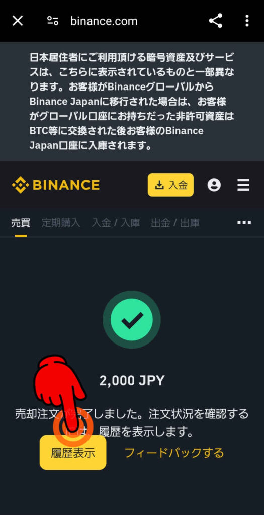 簡単です! BINANCE JAPAN 販売所でビットコインへ交換